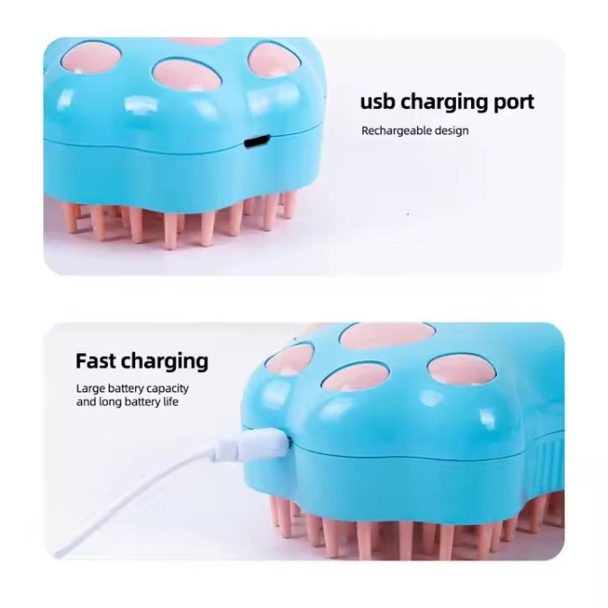 USB RECHARGEABILITY FOR CONVENIENCE: The brush is thoughtfully designed with USB rechargeability, offering the ultimate convenience in charging. Whether you're at home or on the go, you can easily power up the brush using a power bank, laptop, or any power adapter, ensuring that your pet's grooming routine never skips a beat due to a drained battery.